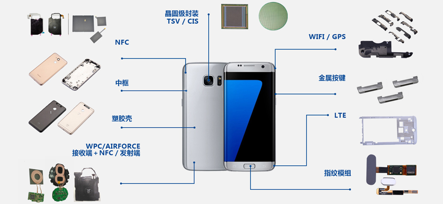 公司生产的产品主要包括移动智能终端天线、精密结构件、无线充电器产品、指纹及传感器模组、半导体先进封装、智能检测治具及装备等领域。产品主要应用于手机、平板、可穿戴设备、笔记本电脑、汽车、无人机、安防监控等领域。