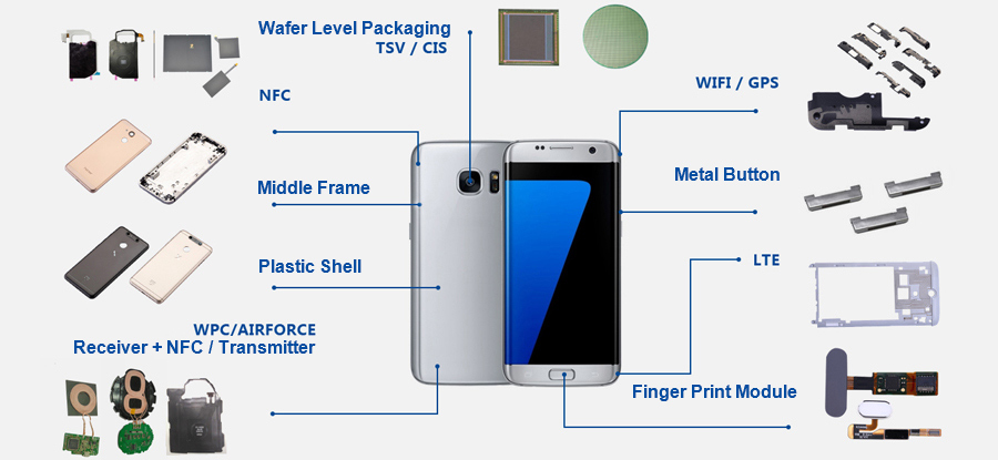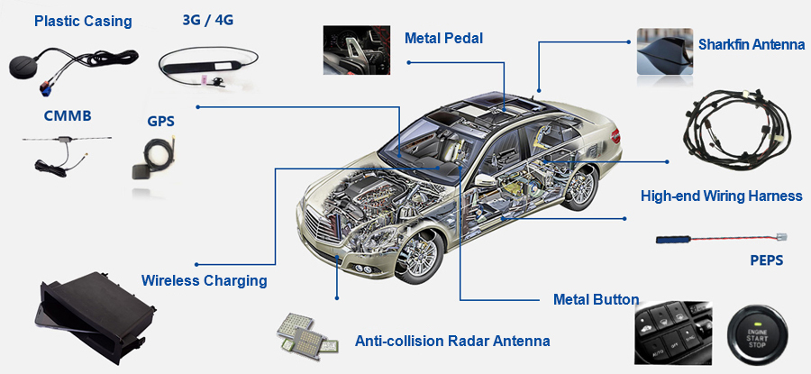 Our products include mobile smart terminal antennas, precision structural parts, wireless charging products, fingerprint and sensor modules, advanced semiconductor packaging, testing and intelligent detection equipment and products in other fields. Our products are mainly used in mobile phones, tablets, wearable devices, laptops, automobiles, unmanned aerial vehicles, security monitoring and other fields.